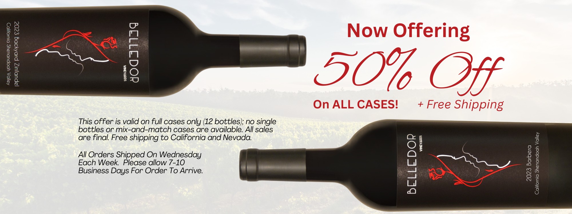 We are now offering the final remaining inventory exclusively online, available by case purchase only. To thank our loyal supporters and to clear out the last of our wines, all cases are 50% off with FREE shipping.